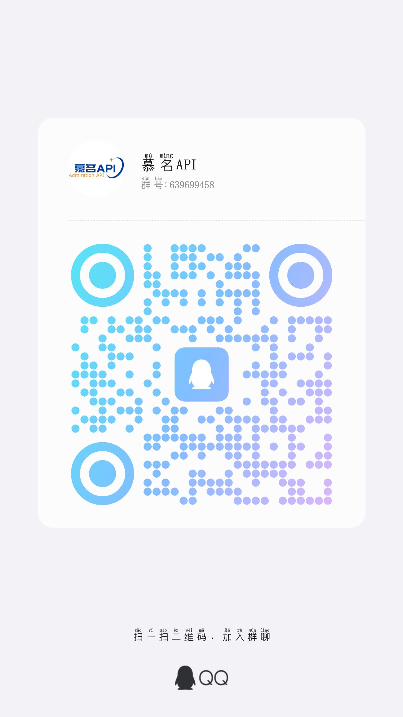 群简介:慕名API,是一个免费、主打游戏类接口的在线API服务,为客户提供稳定可靠的api服务。